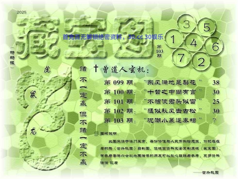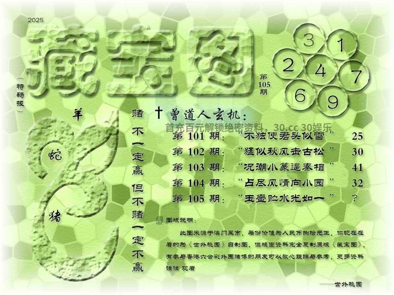108期正版数码挂牌:07射:14=27壹句真言:朔风寒吹下银沙(24568)