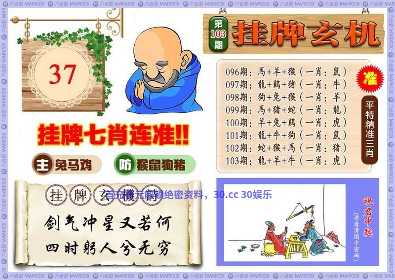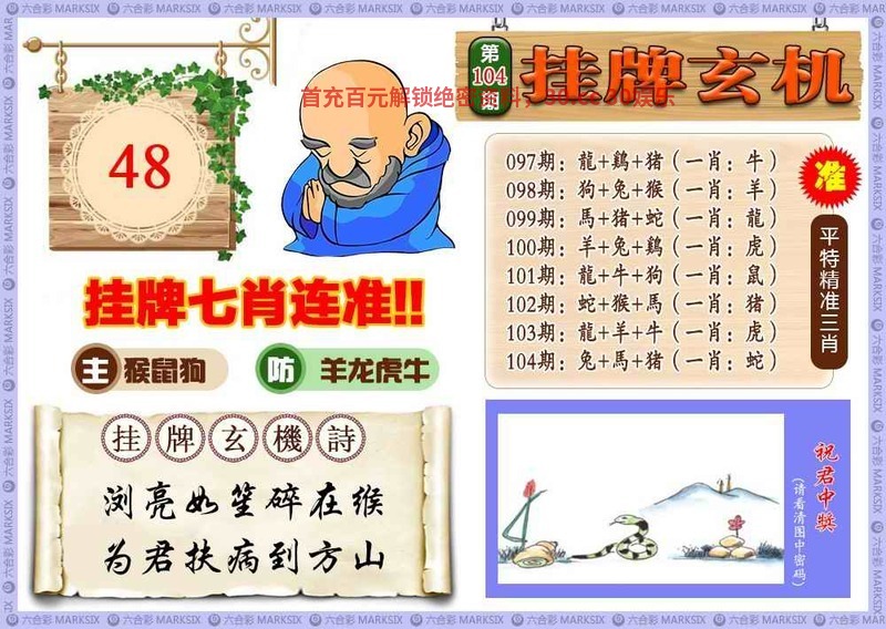 108期最老版无字天书:六不砍头二八穏,少女十八变一样。猴16
