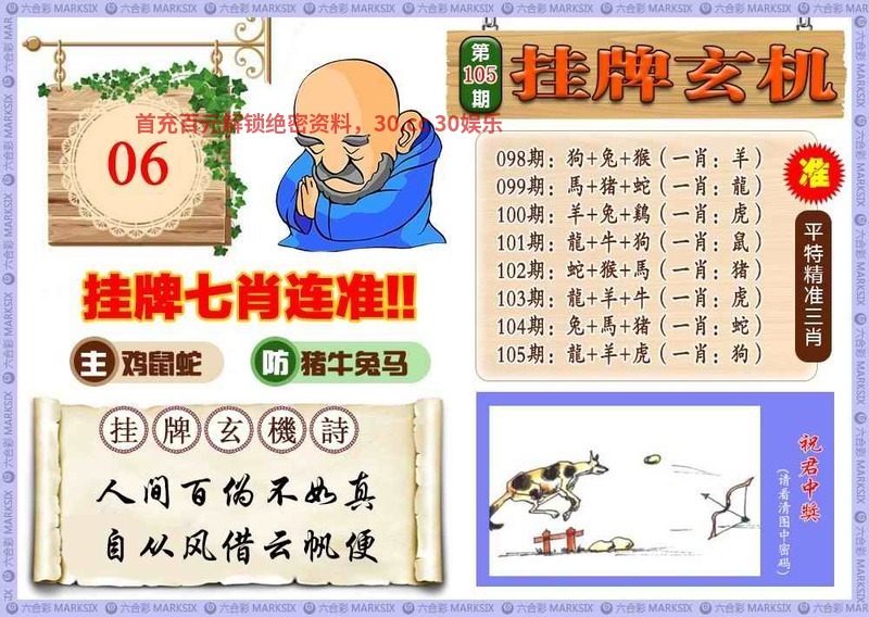 105期:③肖 | 鸡羊狗 | 开:狗44中 |