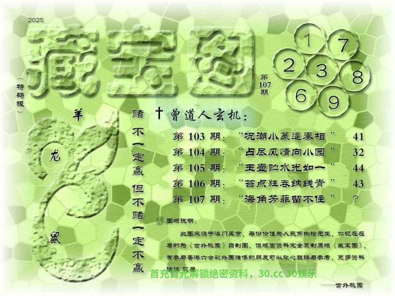 108期藏宝图:【泥絮沾来薄幸名】 浅解:泥絮沾来薄幸名,解泥解黑色的生肖解兔龙蛇马羊猴 综合解肖:虎鼠蛇马羊猪鸡牛猴 |