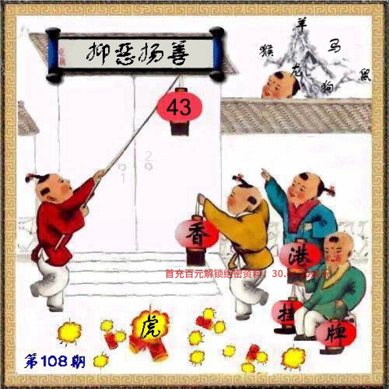 108期正版彩图挂:43爆:虎 挂牌成语:抑恶扬善 挂牌出肖:猴龙狗羊马鼠